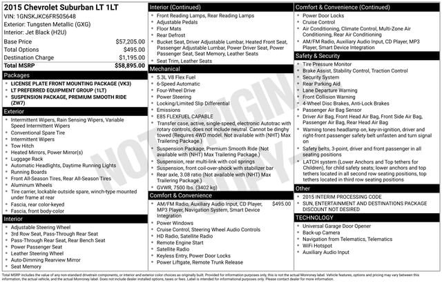 Recent Arrival! Odometer is 5644 miles below market average! 2015 Chevrolet Suburban LT Tungsten Metallic 4WD 6-Speed Automatic Electronic with Overdrive EcoTec3 5.3L V8 Flex Fuel