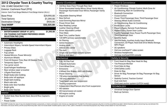 * If you refuse to accept lifeâs necessities like family transportation and versatile utility without a generous helping of luxury and style, the 2012 Chrysler Town & Countryâs impressive standard and available features will likely satisfy your needs as well as your desires. Source: KBB.com
